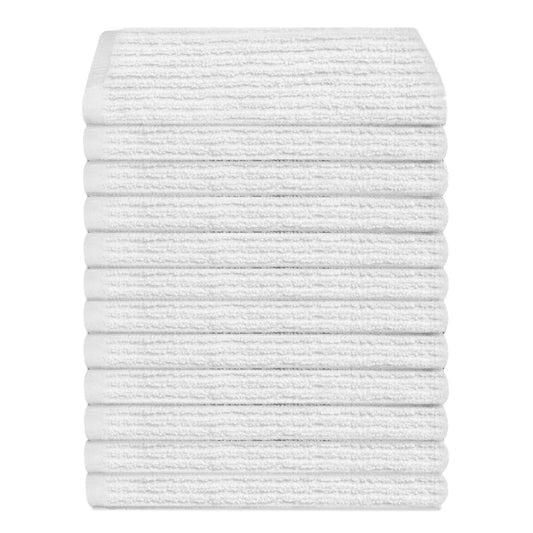 12 Pack Ribbed Weave Bar mop Towels, 100% Cotton, 16x19 inches (WHITE)