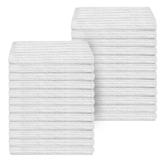 24 Pack Ribbed Weave Bar mop Towels, 100% Cotton, 16x19 inches (WHITE)