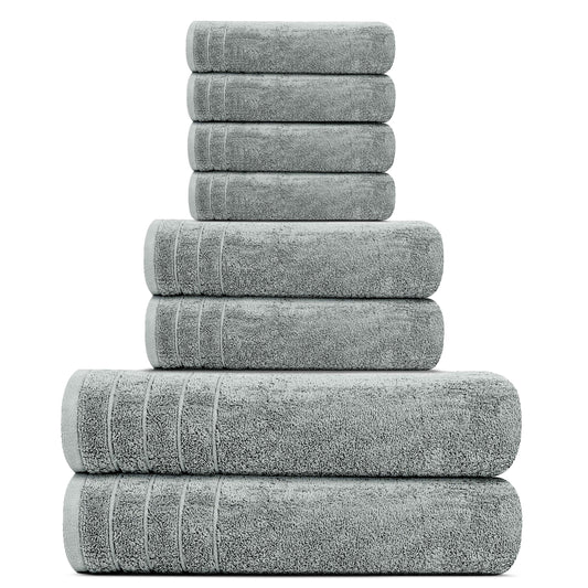Tens Towels 8 Piece Towels Set, 2 Extra Large Bath Towels, 2 Hand Towels, 4 Washcloths (Cool Grey)