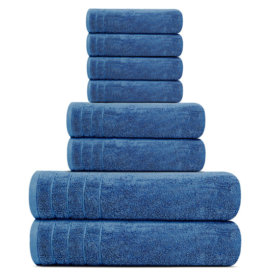 Tens Towels 8 Piece Towels Set, 2 Extra Large Bath Towels, 2 Hand Towels, 4 Washcloths (Blue)