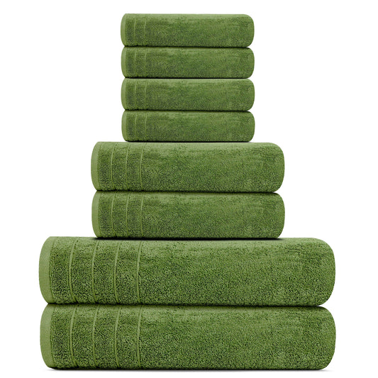 Tens Towels 8 Piece Towels Set, 2 Extra Large Bath Towels, 2 Hand Towels, 4 Washcloths (Green)