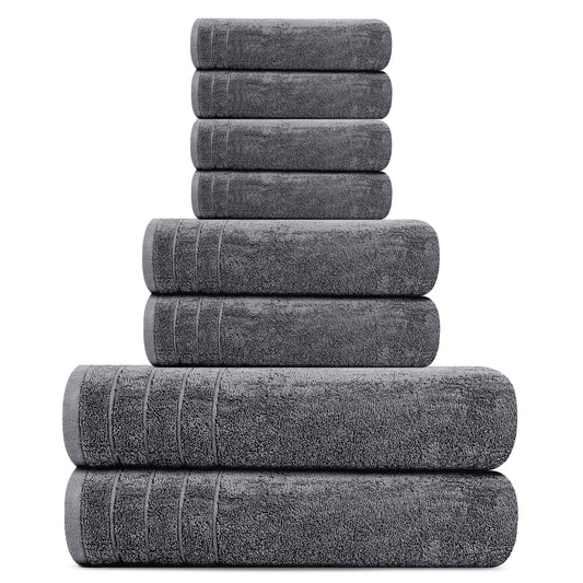 Tens Towels 8 Piece Towels Set, 2 Extra Large Bath Towels, 2 Hand Towels, 4 Washcloths (Dark Grey)