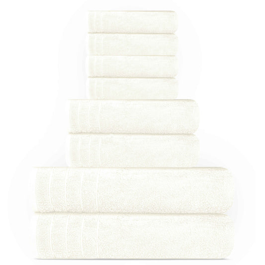 Tens Towels 8 Piece Towels Set, 2 Extra Large Bath Towels, 2 Hand Towels, 4 Washcloths (Cream)