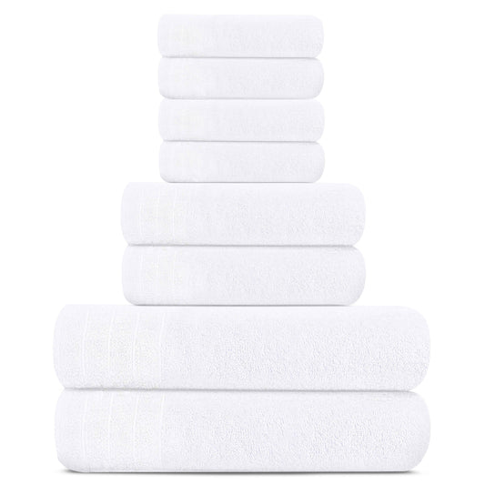 Tens Towels 8 Piece Towels Set, 2 Extra Large Bath Towels, 2 Hand Towels, 4 Washcloths (White)