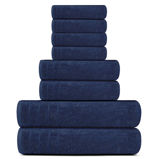 Tens Towels 8 Piece Towels Set, 2 Extra Large Bath Towels, 2 Hand Towels, 4 Washcloths (Navy)