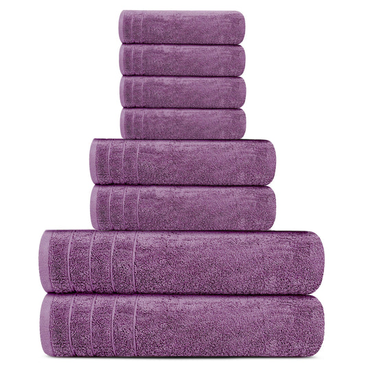 Tens Towels 8 Piece Towels Set, 2 Extra Large Bath Towels, 2 Hand Towels, 4 Washcloths (Purple)