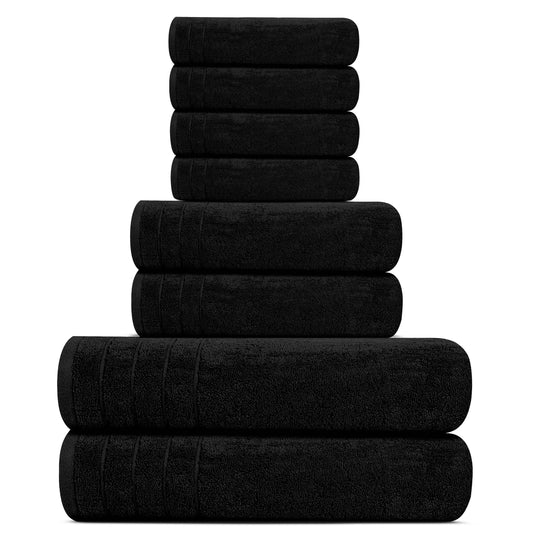 Tens Towels 8 Piece Towels Set, 2 Extra Large Bath Towels, 2 Hand Towels, 4 Washcloths (Black)