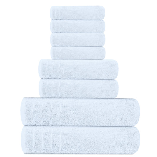 Tens Towels 8 Piece Towels Set, 2 Extra Large Bath Towels, 2 Hand Towels, 4 Washcloths (Sky Blue)