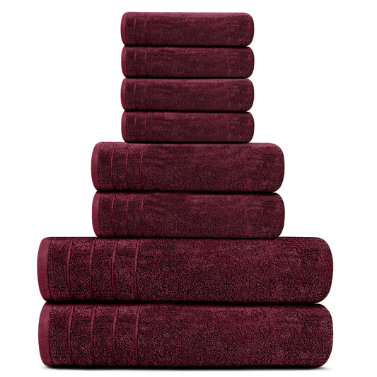 Tens Towels 8 Piece Towels Set, 2 Extra Large Bath Towels, 2 Hand Towels, 4 Washcloths (Burgundy)