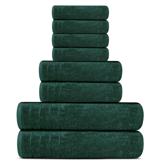 Tens Towels 8 Piece Towels Set, 2 Extra Large Bath Towels, 2 Hand Towels, 4 Washcloths (Hunter Green)
