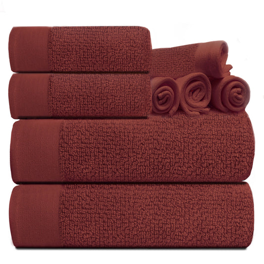 Tens Towels 8 Pack Popcorn 2 Large Bath Towels, 2 Hand Towels, 4 Washcloths (Burgundy)