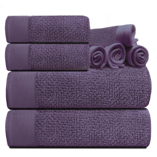 Tens Towels 8 Pack Popcorn Towels Set, 2 Large Bath Towels, 2 Hand Towels, 4 Washcloths (Purple)