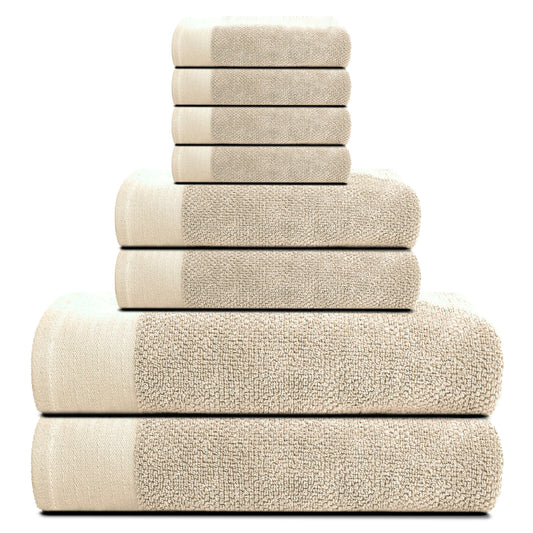 Tens Towels 8 Pack Popcorn Towels Set, 2 Large Bath Towels, 2 Hand Towels, 4 Washcloths (BEIGE)