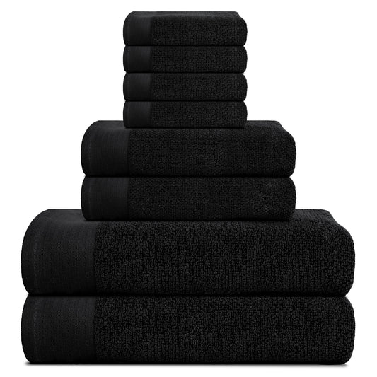 Tens Towels 8 Pack Popcorn 2 Large Bath Towels, 2 Hand Towels, 4 Washcloths, (BLACK)