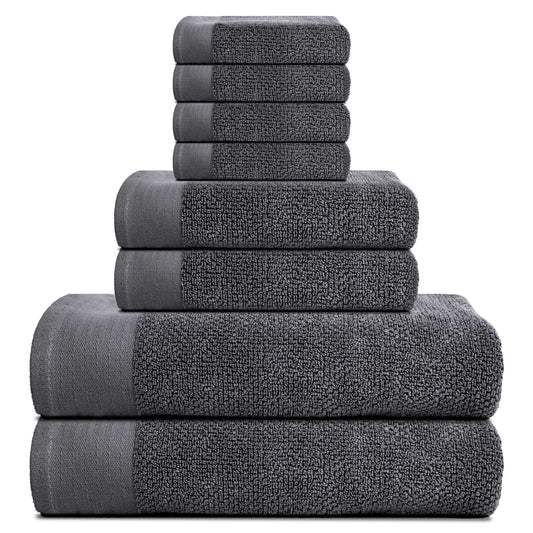 Tens Towels 8 Pack Popcorn 2 Large Bath Towels, 2 Hand Towels, 4 Washcloths (DARK GREY)