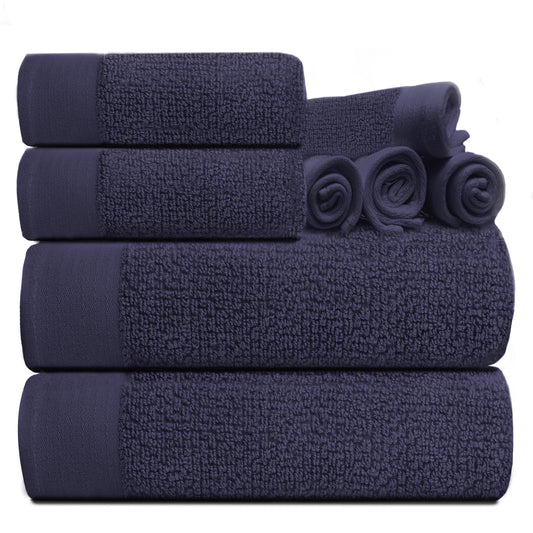 Tens Towels 8 Pack Popcorn Towels Set, 2 Large Bath Towels, 2 Hand Towels, 4 Washcloths (NAVY)