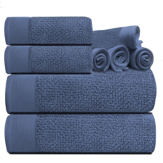 Tens Towels 8 Pack Popcorn Towels Set, 2 Large Bath Towels, 2 Hand Towels, 4 Washcloths (Denim Blue)