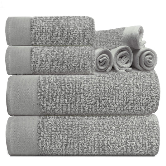 Tens Towels 8 Pack Popcorn Towels Set, 2 Large Bath Towels, 2 Hand Towels, 4 Washcloths (STEEL GREY)